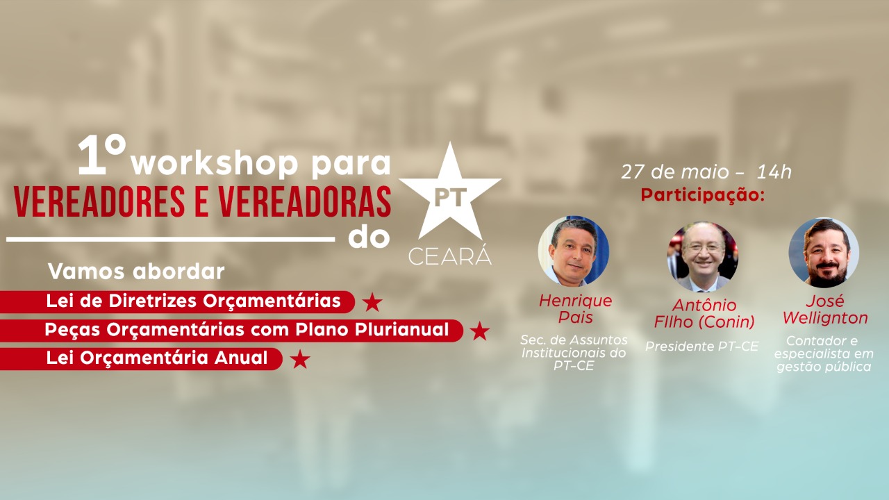 Serão 16h de curso divididos em quatro encontros on-line. O Partido dos Trabalhadores do Ceará…