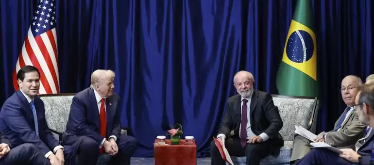 No segundo encontro com o presidente Donald Trump desde o início do tarifaço imposto ao Brasil, em agosto, o presidente Lula voltou a pedir que as barreiras econômicas e sanções a autoridades ao Brasil sejam retiradas. Reunidos na Malásia neste domingo (26), Lula e Trump iniciaram as tratativas para que as negociações entre as equipes diplomáticas dos dois países avancem, com sinalizações de que o diálogo prosseguirá pelo resto do dia e nas próximas semanas.