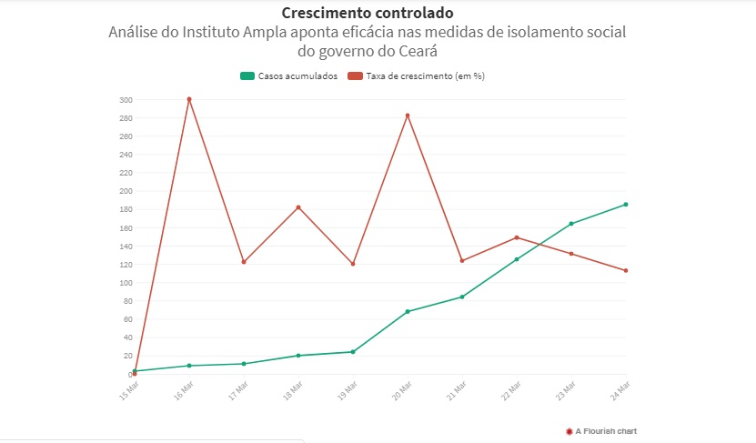 Uma análise de dados do Instituto Ampla Pesquisa divulgada nesta quarta-feira, 25, aponta que medidas de isolamento social tomadas pelo governo Camilo Santana (PT) têm apresentado resultado na contenção da disseminação do novo coronavírus no Ceará.