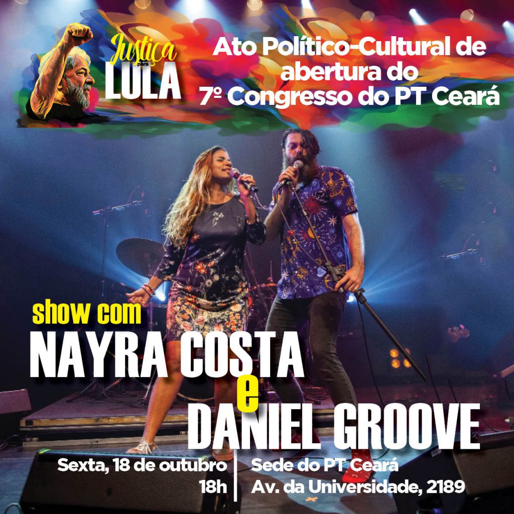 A abertura do congresso acontece concomitantemente com o Ato político Cultural – Justiça por Lula. A atividade tem inicio às 18h, na sede do PT Ceará, com a presença dos secretários estaduais, deputados e deputadas, prefeitos (as), vice-prefeitos(as), movimentos sociais, partidos aliados e show da Nayra Costa e Daniel Groove. O evento será aberto ao público.