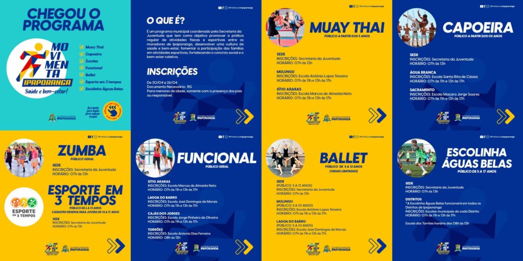 A prefeitura de Ipaporanga, que tem à frente o prefeito petista Amaro Pereira lançou neste mês de abril o “Movimenta Ipaporanga, Saúde e Bem-Estar”. Este programa busca incentivar a prática de atividades físicas e promover uma cultura de saúde e bem-estar para a nossa população.